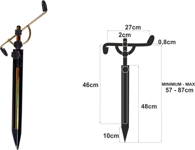 Velmi pevná, celokovová, teleskopická podpěrka s nastavitelnou výškou a sklonem prutu. Je to výborná podpěrka při lovu na feeder v řekách a při lovu dravců.
