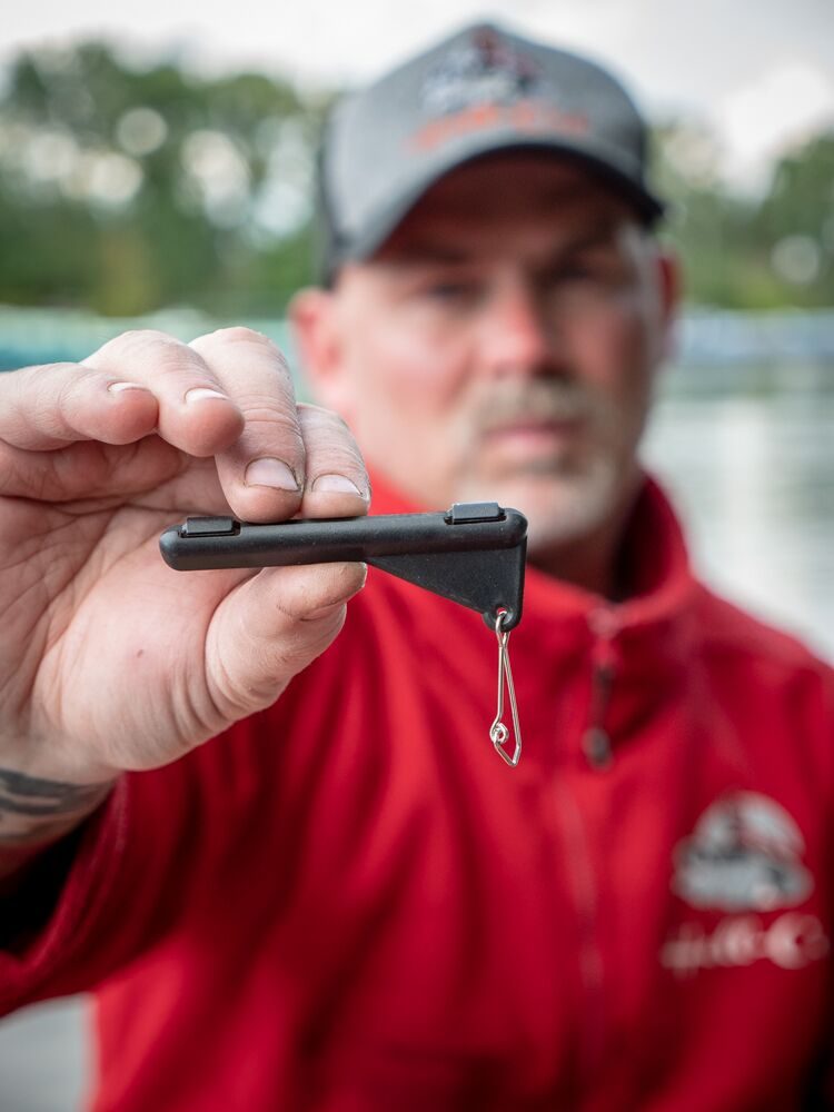 Tento závěsek, lze kdykoli sundat a není nutné řezat montáž. Závěsek slouží pro připnutí olova nebo jiné zátěže, která může být buď pevná, nebo trhací. Závěsek je vyrobený z pevného materiálu, který je opatřen silnou karabinou.