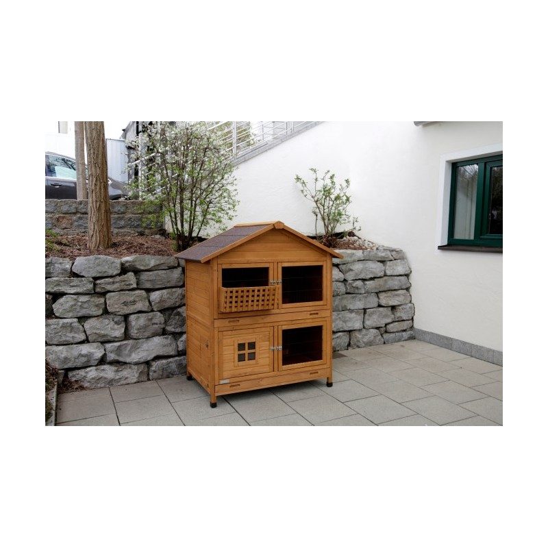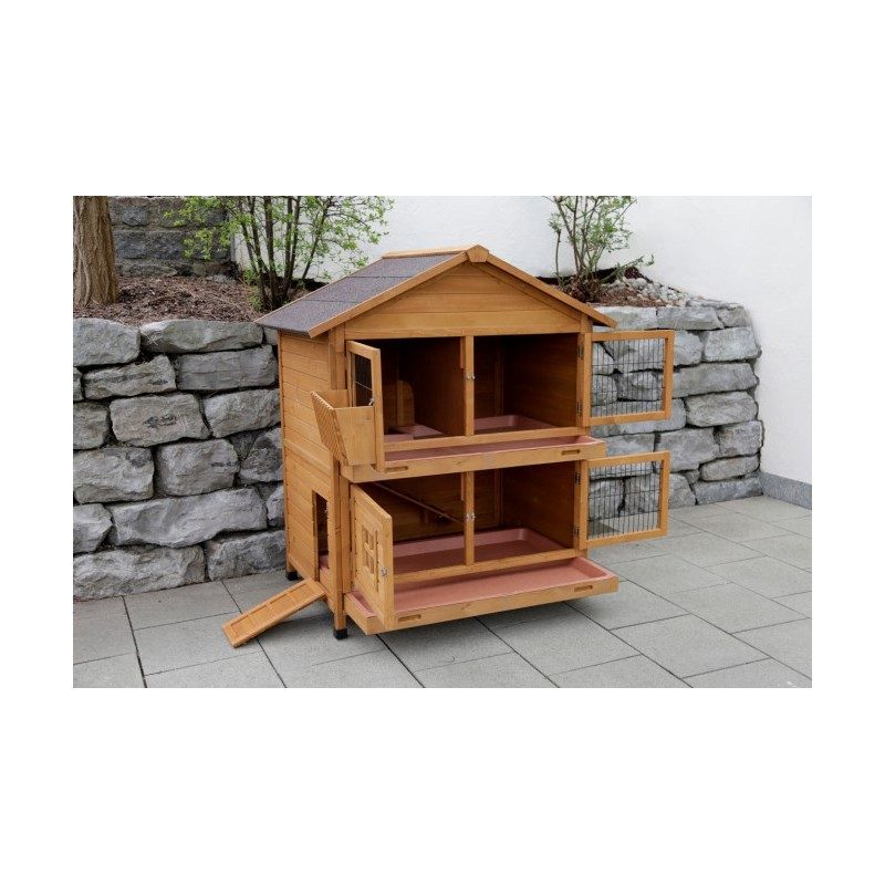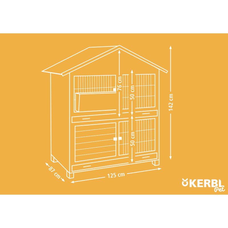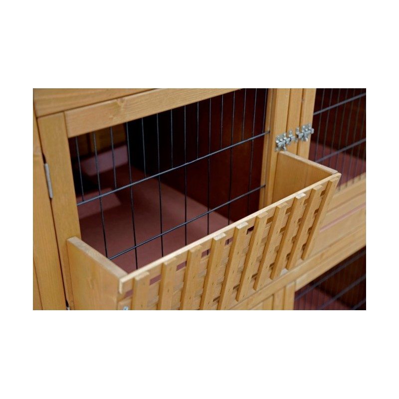Doporučení: Výrobek je povrchově ošetřen základním ochranným nátěrem. Pro delší životnost je třeba, jako u každého dřeva, ochranný nátěr obnovovat. Dále pak umístěte králíkárnu ideálně tak, aby byla chráněna před deštěm, sněhem a extrémním slunečním zářením.