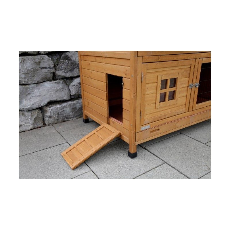 přídavné boční dveře (vlevo) pro přístup ven nebo do výběhu (výběhy pro králíky a jiné hlodavce)
