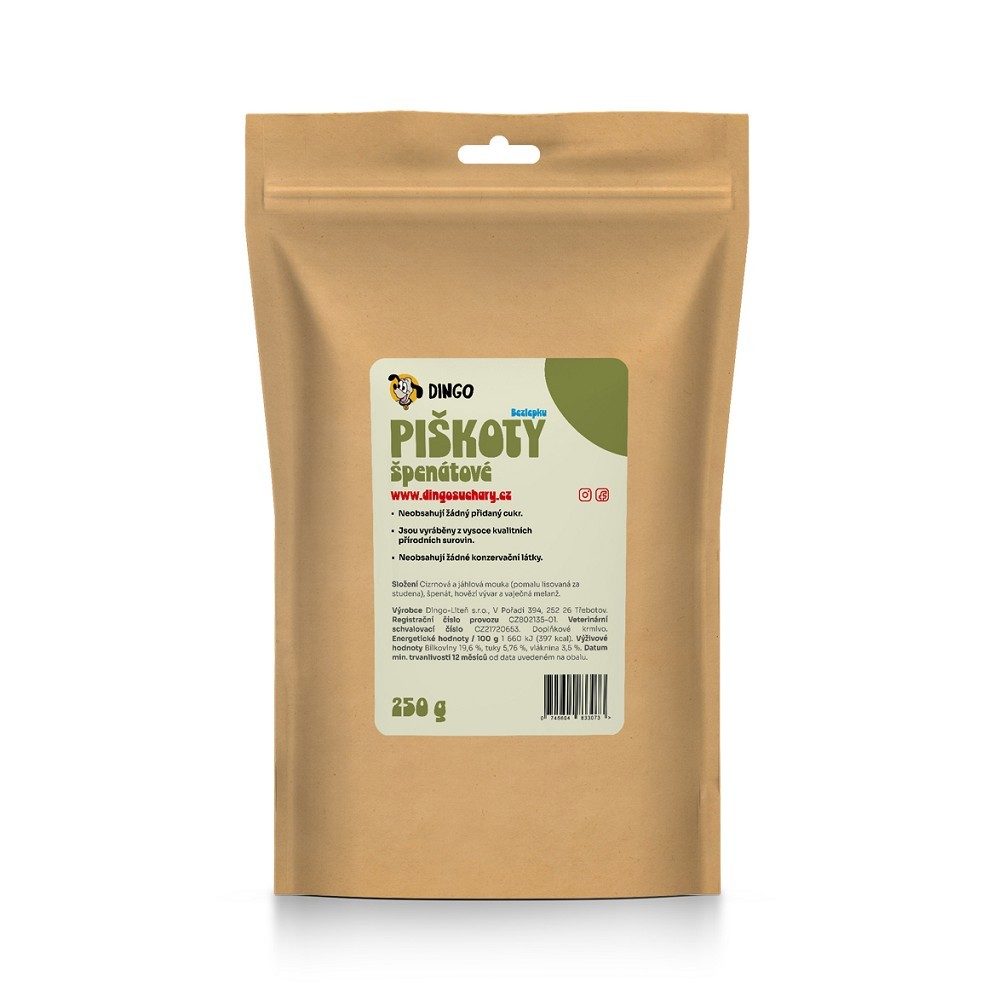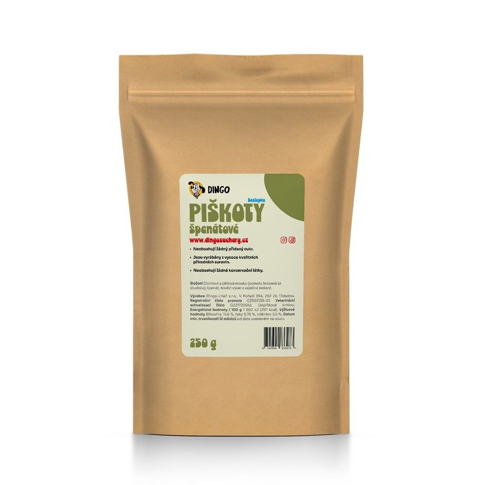 Složení: cizrnová a jáhlová mouka (pomalu lisovaná za studena), špenát, hovězí vývar a vaječná melanž