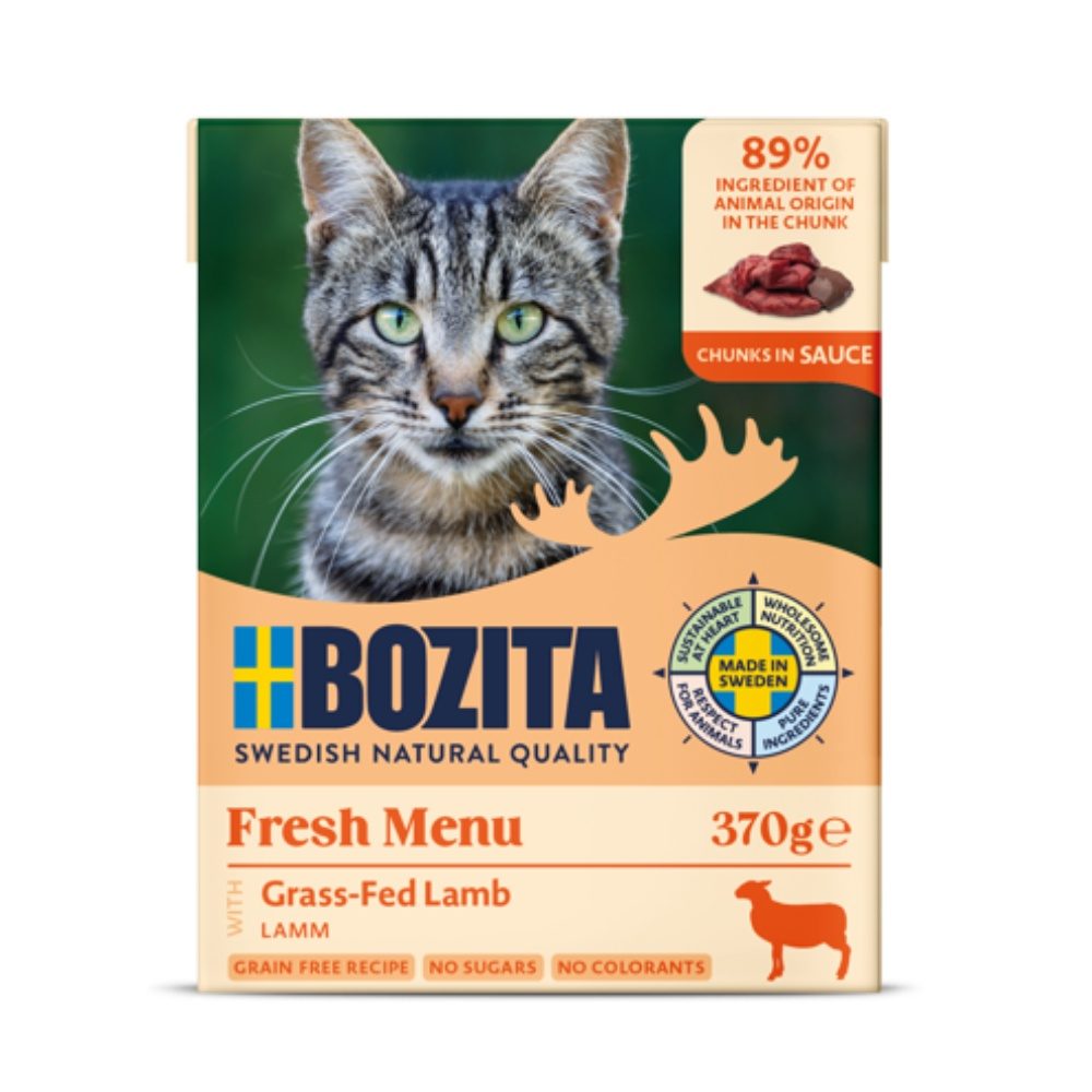 Bozita Cat kousky připravené z vysoce kvalitních surovin a 89 % složek živočišného původu v kouscích.