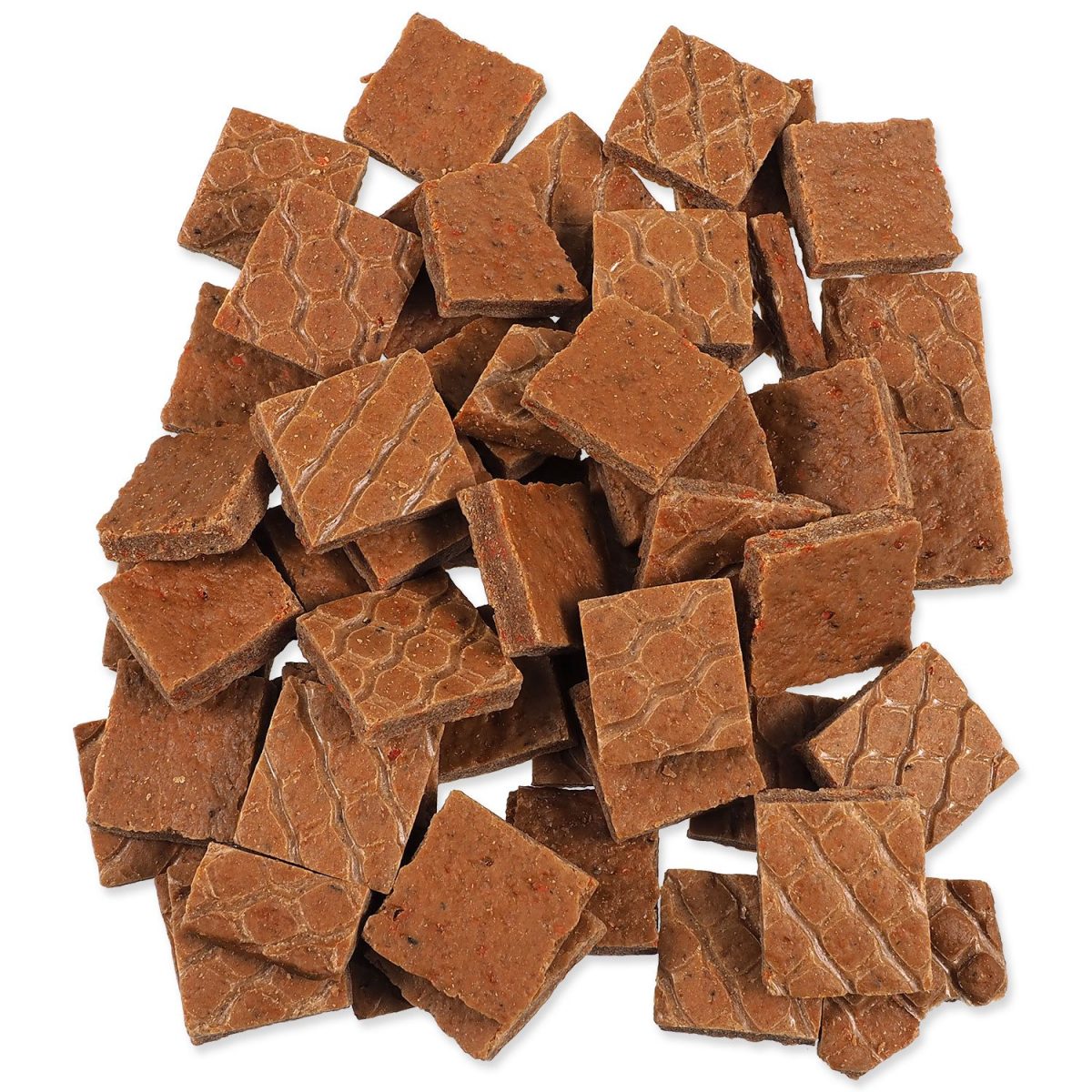 Krmný návod: Podávejte jako odměnu vedle denní krmné dávky (viz krmná tabulka). Množství pamlsků přizpůsobte dle velikosti a aktivity psa. Vždy zajistěte zvířeti přístup k čerstvé pitné vodě. Skladujte na suchém a chladném místě. Po otevření spotřebujte do 5 dnů v létě a do 7 dnů v ostatních ročních obdobích. Zvířeti nepodávejte absorbér kyslíku. Výrobek není určen pro lidskou konzumaci.