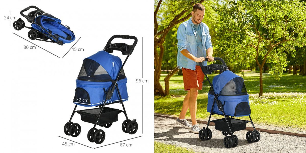 Kočárek pro psy PAWHUT D00-127BU, modrý