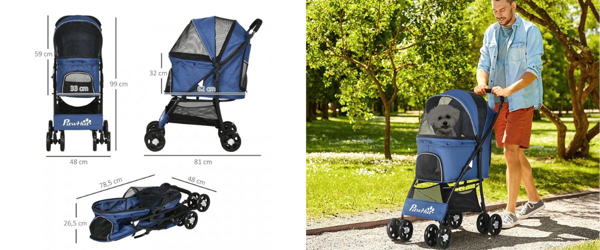 Kočárek pro psy PAWHUT D00-165V00DB, modrý