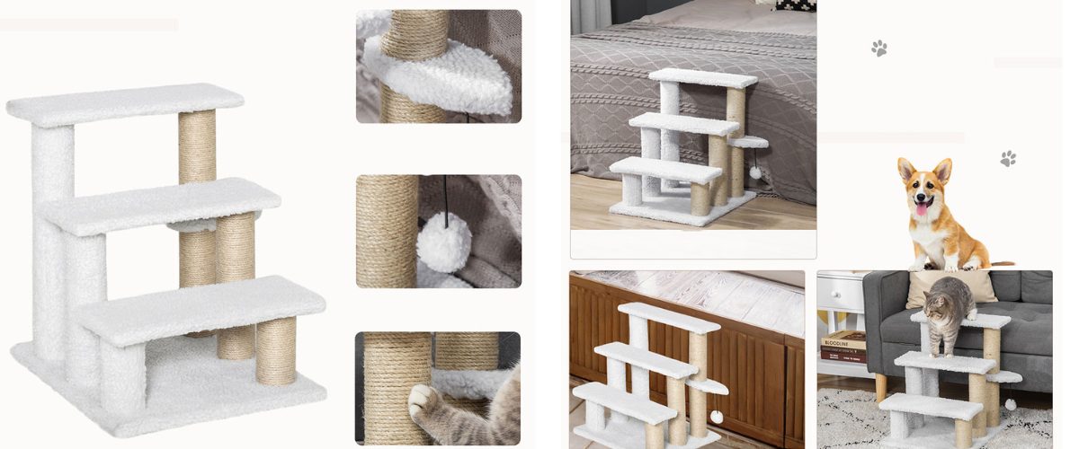 Pro pohodlný a bezpečný pohyb Vašeho mazlíčka jsou tyto schůdky ideálním řešením. Jejich ergonomický design zajišťuje snadný a pohodlný přístup na vyvýšená místa, což pomáhá předcházet namáhání kloubů a svalů. Protiskluzový povrch a stabilní konstrukce poskytují maximální bezpečnost během používání. Schůdky jsou snadno udržovatelné a lze je jednoduše otřít, aby zůstaly hygienické a čisté. Schůdky pro psy a kočky jsou navrženy tak, aby nejen usnadnily přístup na vyšší místa, ale také nabídly další užitečné funkce. Jsou vybaveny škrabadlem, které poskytuje úlevu pro jejich drápky a zároveň podporuje přirozené chování. K tomu je přidán měkký míček, který slouží jako zábavná hračka, jež zabaví Vaše mazlíčky a přinese jim radost při každodenních hrách.