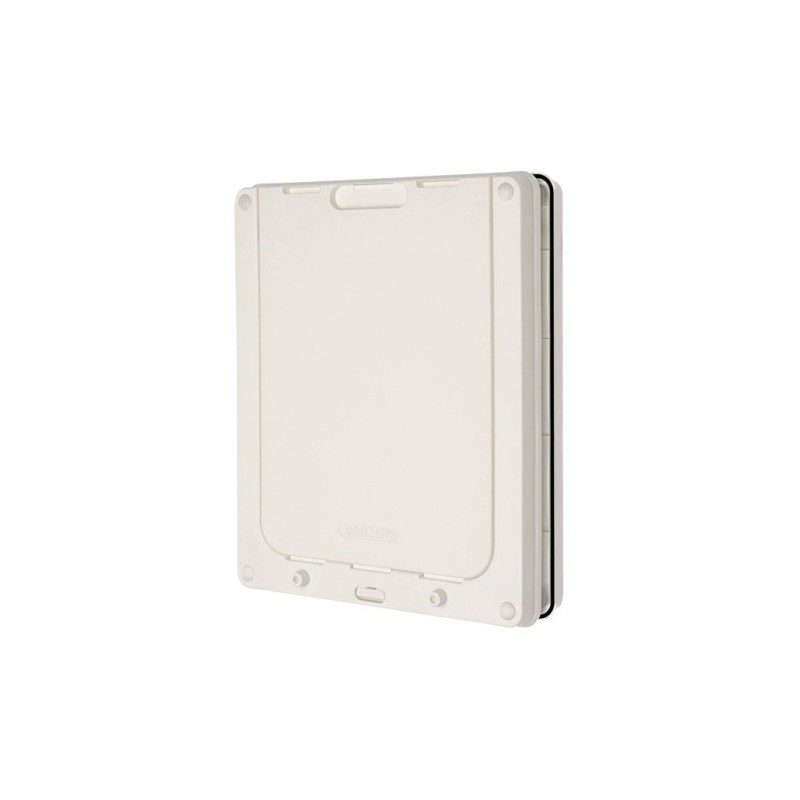 Dvířka pro psy vhodná pro teriéry, pudly, španěláky a ostatní pejsky s výškou ramen do 460 mm. Průchozí dvířka disponují robustními bezpečnostními rámy a lze je namontovat do všech dveří, panelů a stěn s hloubkou do 50 mm. Lehká, a však odolná průhledná otevírací klapka s kartáčovým těsněním, odolá průvanu a nepřiznivému počasí.