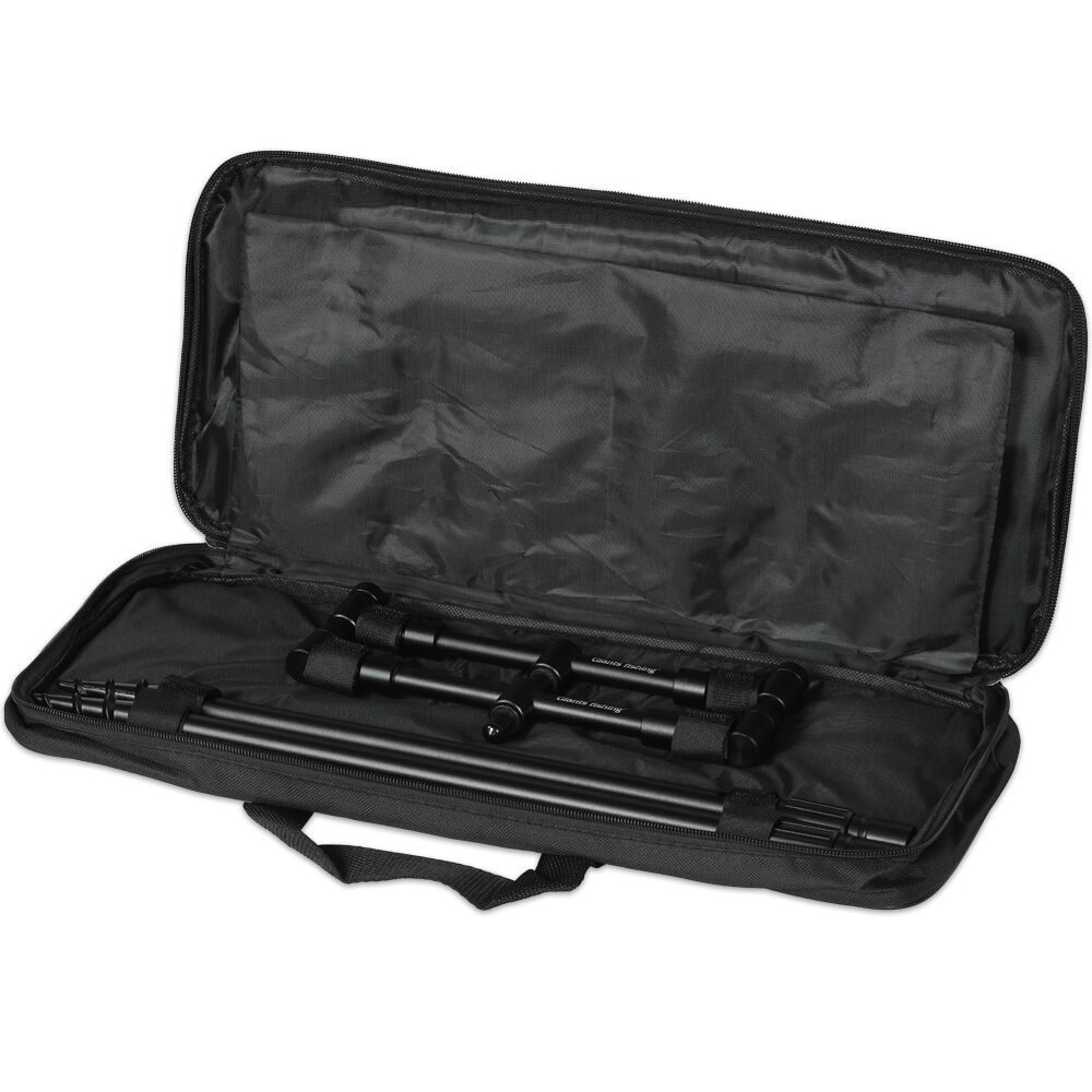 Konstrukce je vyrobena z hliníkové slitiny s povrchovou úprava v černé barvě. Jak vidličky, tak i hrazdy jsou opatřeny otočným zámkem, který bezpečně zafixuje požadovanou délku či šířku. Velmi široké využití, kde nelze použít stojan, ale potřebujete stabilně upevnit pruty. Polstrovaný obal je součástí výrobku.