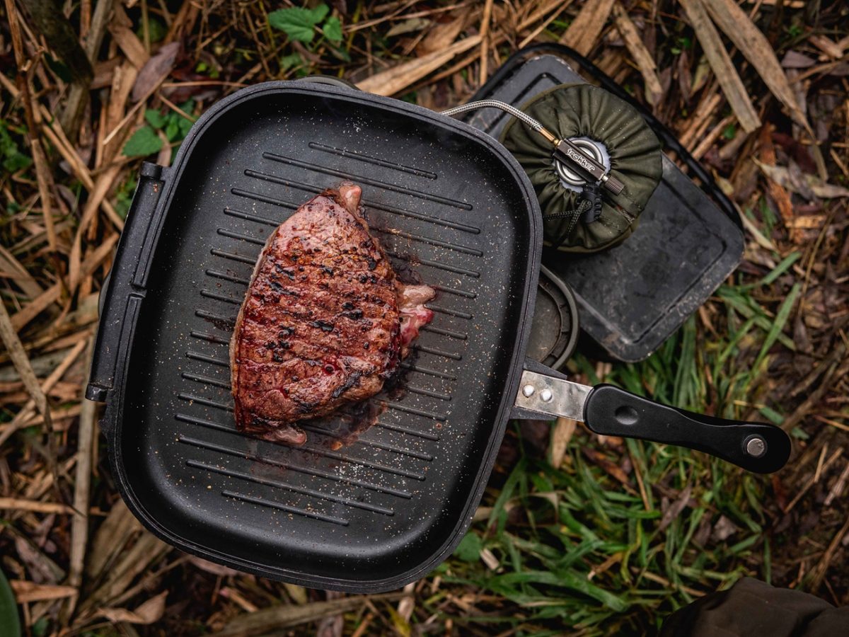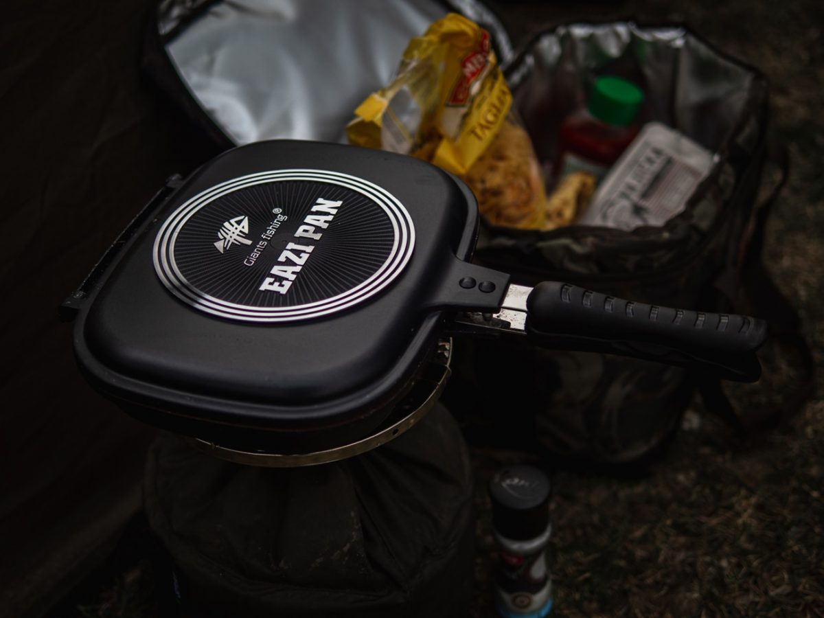 Oboustranná pánvička od Giants fishing s nepřilnavým povrchem Non-Stick , silikonovým těsněním a v krásném designu, je důležitou součástí každého rybáře kuchaře.