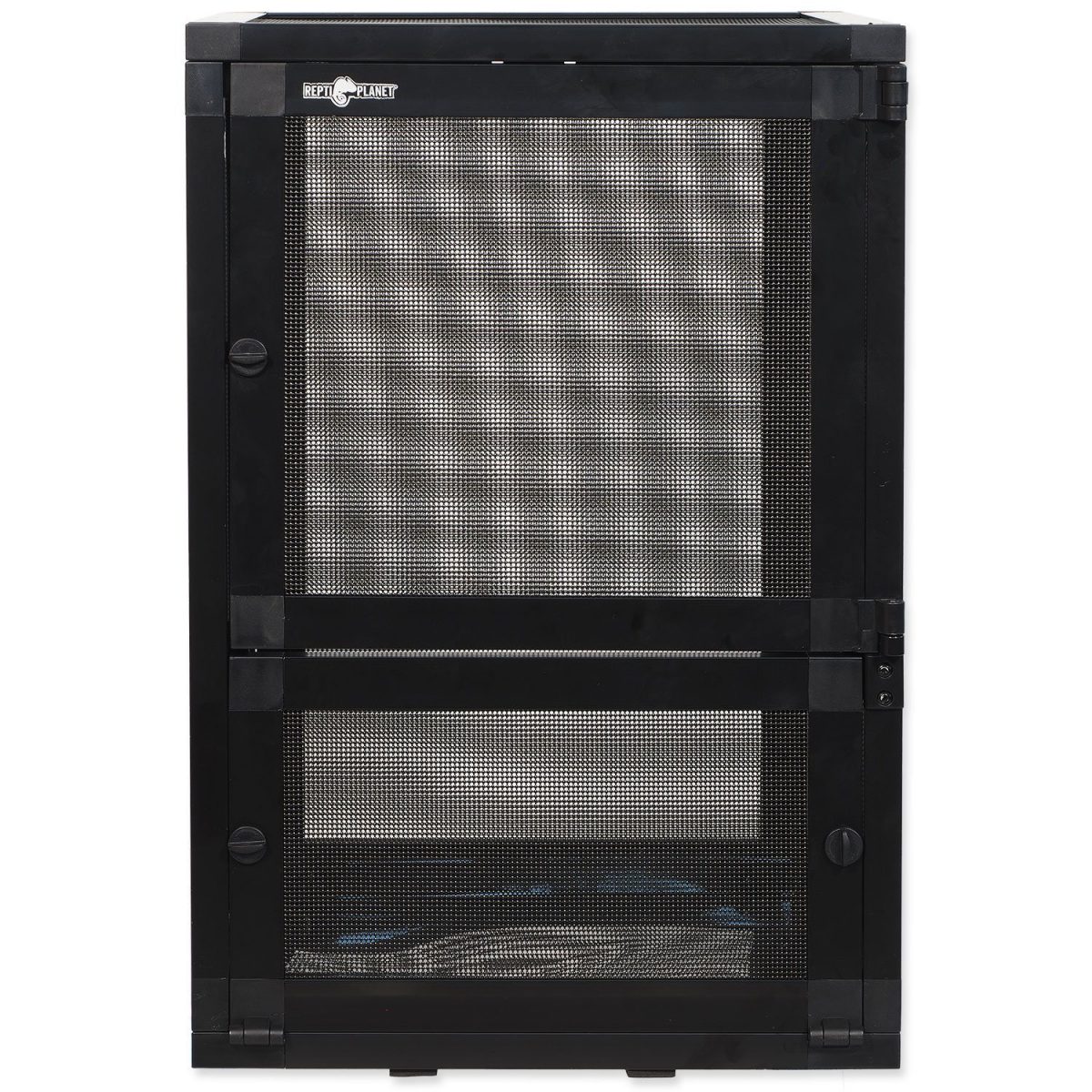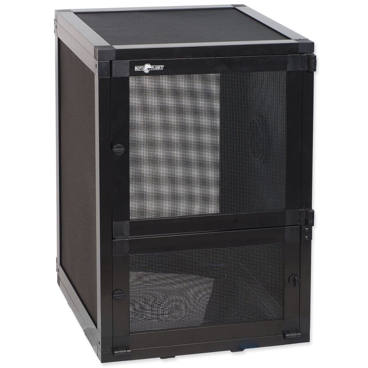 Prémiové síťované terárium vysoké kvality, ideální pro stromové plazy a obojživelníky, kteří vyžadují intenzivnější proudění vzduchu.? Síť na všech stranách terária (včetně přední a zadní stěny) zajišťuje maximální možnou ventilaci a přístup čerstvého vzduchu (vhodné pro horské chameleony, abronie a mnoho dalších plazů a obojživelníků). Intenzivní proudění vzduchu minimalizuje tvorbu plísní.? Specifikace Vysoce kvalitní černý hliníkový rám, odolný proti korozi (velmi lehká konstrukce). Nový patentovaný design pro snadnou montáž a demontáž během pár minut. Síťovaná výplň všech bočních i vrchních dílů je vyrobena z velmi kvalitní lakované nerezové oceli, odolné proti korozi. Síťované stěny a strop umožňují pronikání UVB záření. Proto světelný a tepelný zdroj můžete jednoduše umístit přímo k síťce. Vyklápěcí přední spodní díl usnadňuje čištění a manipulaci. Plastová vanička na dně umožňuje použití substrátu přímo v teráriu. Adaptér pro kabely je ve stejném designu jako u sestavitelných terárií značky Repti Planet. Integrované držáky na trysky rosících zařízení – plná kompatibilita s produkty Repti Planet. Rozměry 30 x 30 x 45 cm