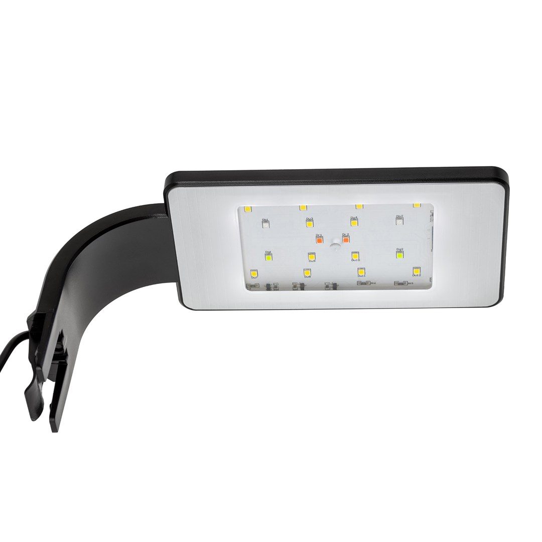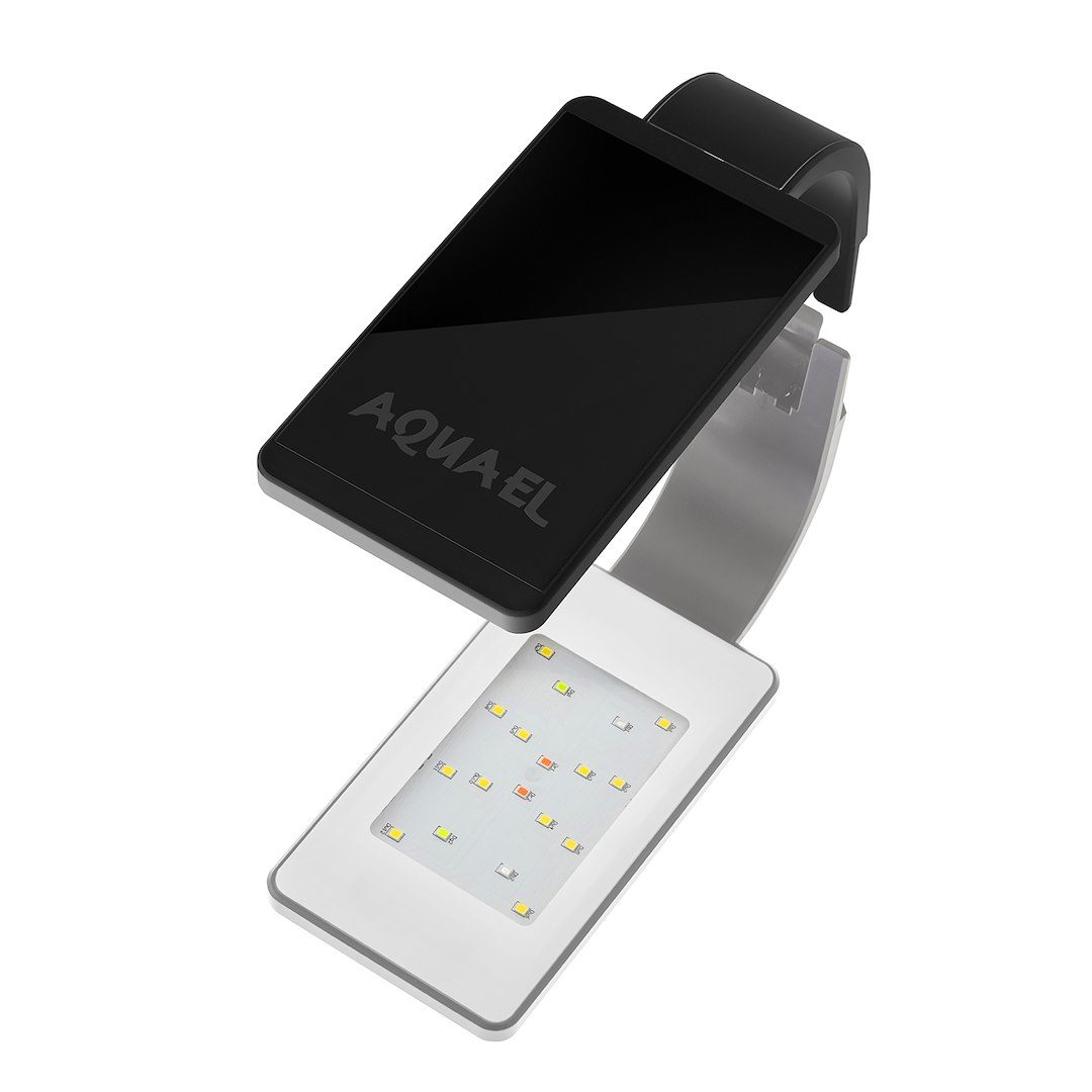 Světlo se připevní doslova jedním pohybem - stačí ho jednoduše nasunout na okraj nádrže. Speciální výstupky drží rámeček bezpečně na svém místě. Nemusíte se obávat, že by se světlo oddělilo a spadlo do vody.