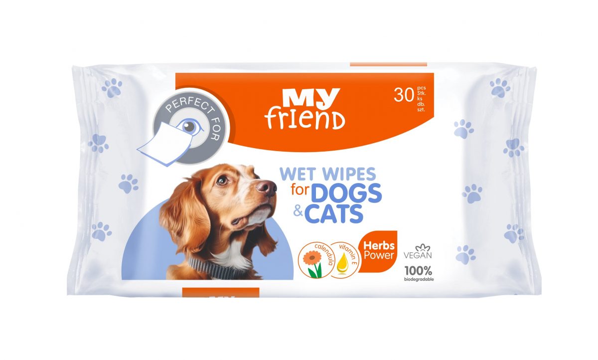 Vlhčené ubrousky obohacené o extrakt z měsíčku lékařského a vitamín E jsou určené k šetrnému čištění citlivé oblasti očí psů a koček.