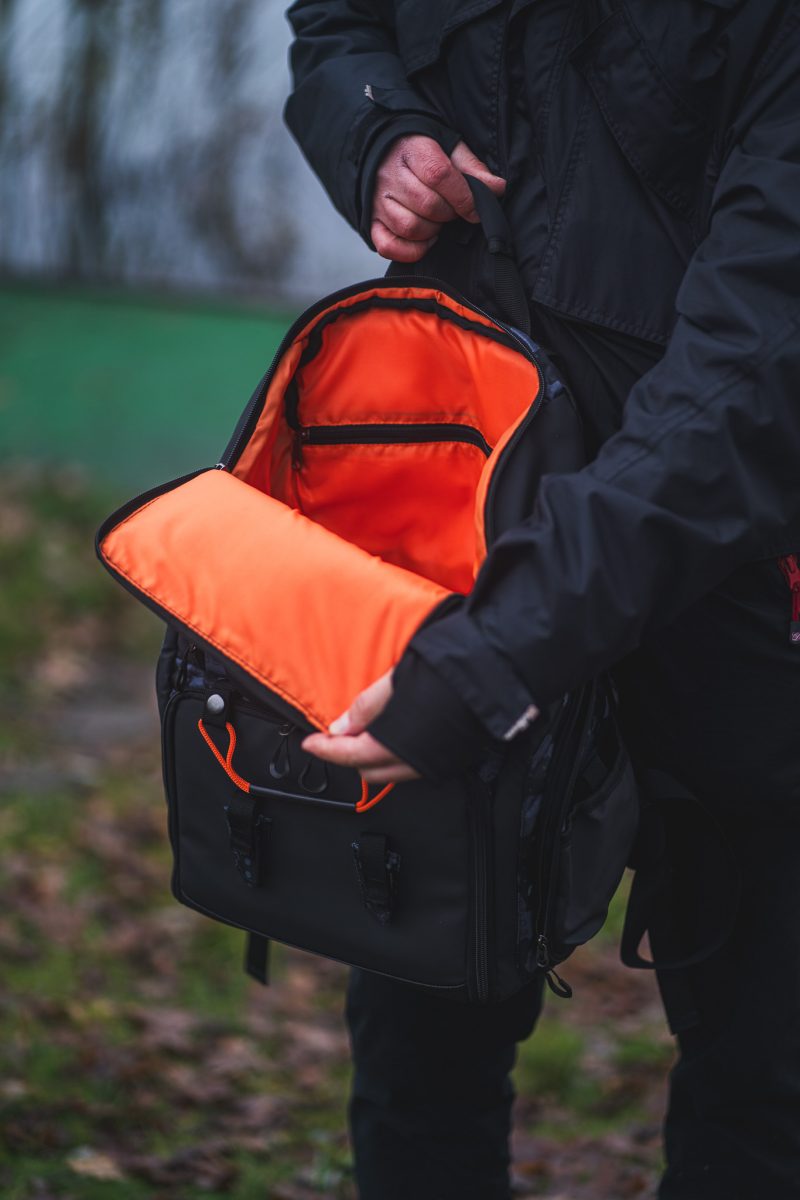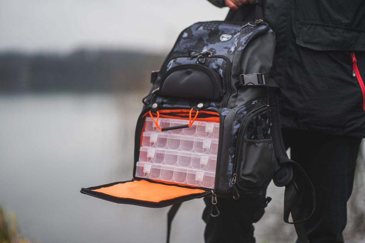 - Ve spodní části jsou čtyři plastové krabičky, které jsou součástí batohu
