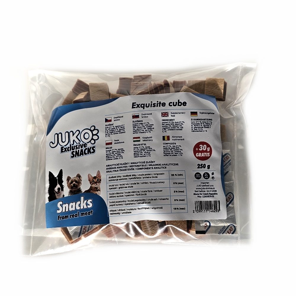 Lahodné a měkké kostičky s kuřecím masem a kachnou.