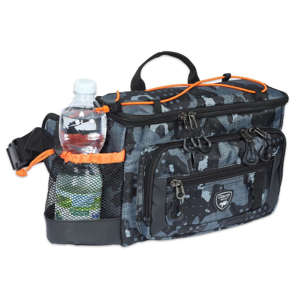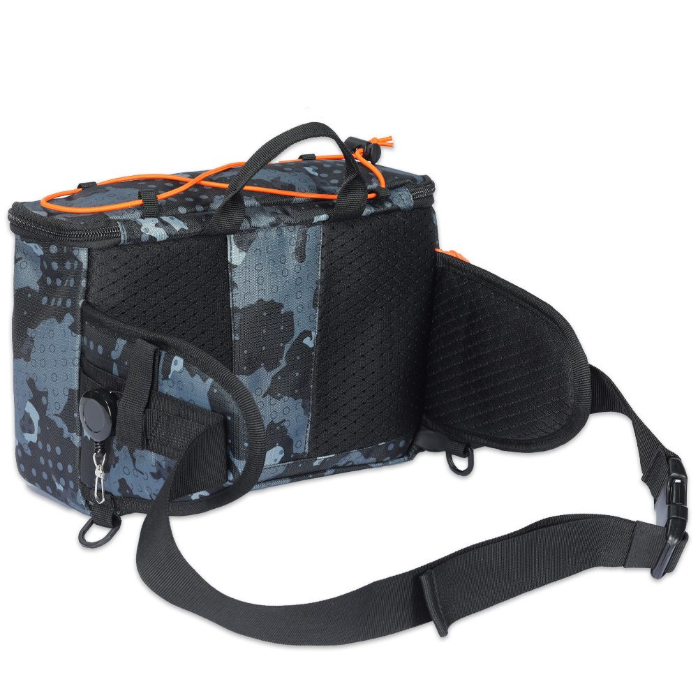 - Pření kapsa s integrovaným cvakátkem vlasce - Dvě větší krabičky (27,5 x18 cm) v hlavní části tašky - Boční síťová kapsa na láhev s vodou - Vodu odpudivá látka 420D v kamuflážovém vzoru