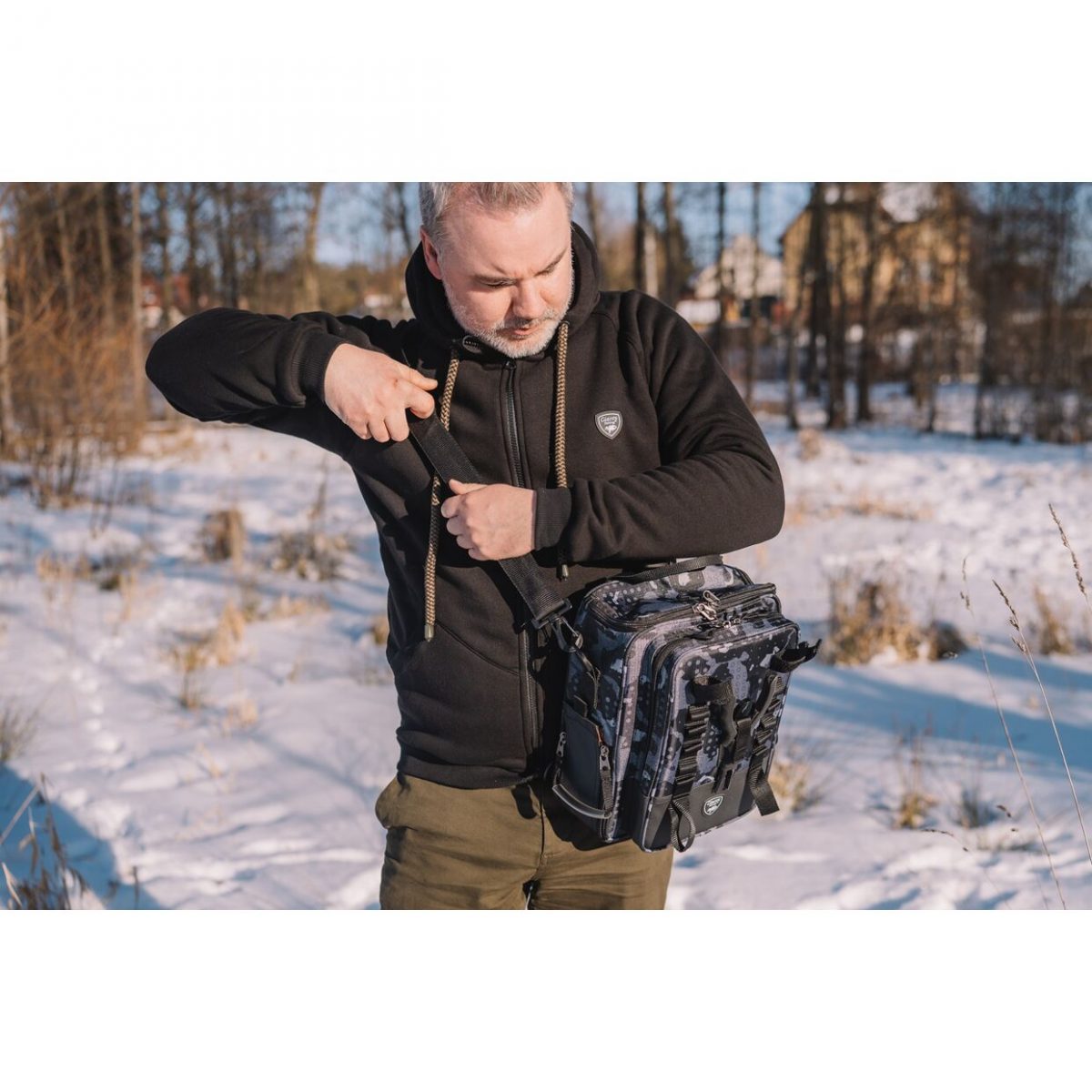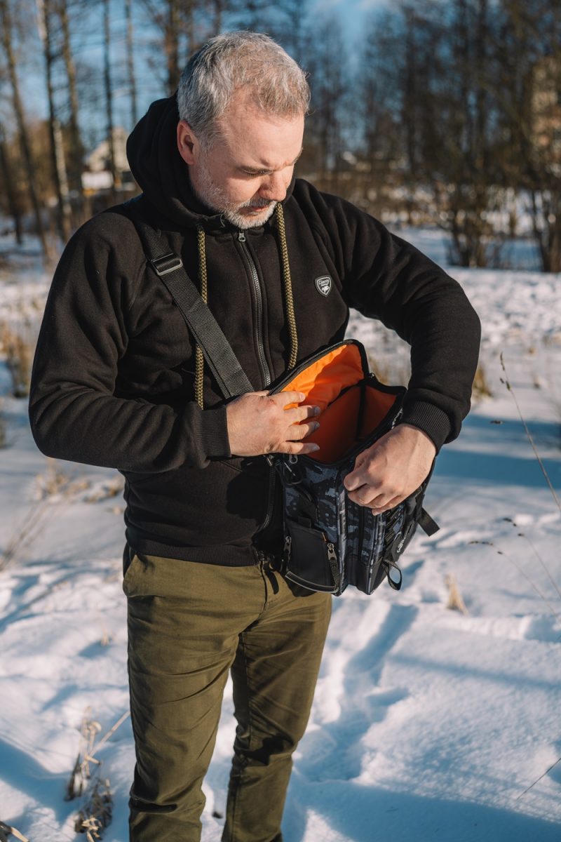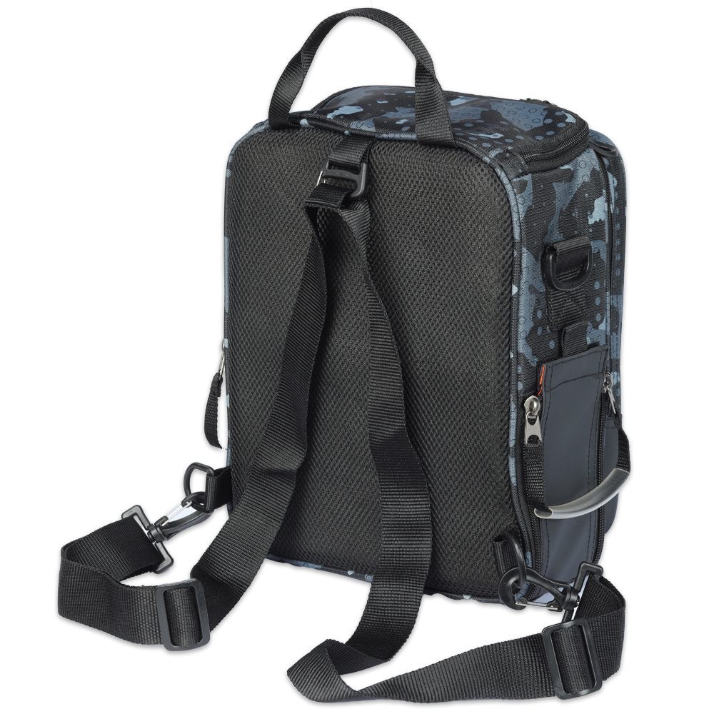 - Různé způsoby nošení, díky výměnnému ramennímu popruhu - Speciální poutka určená pro zavěšení prutů a kleští - Obsahuje jednu větší plastovou krabičku a dvě střední - Snadný přístup do zavazadla z různých stran - Atraktivní maskáčové provedení v černo-šedé barvě - Vodě odolný nylonový materiál 420D