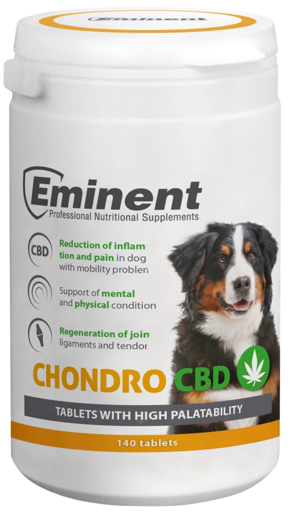 Eminent Chondro CBD je speciálně vytvořený doplněk stravy ve formě tablet, obsahující látky které se podílejí na udržení zdraví kloubní chrupavky, zabezpečují obnovu buněk a tlumí zánětlivé procesy, které onemocnění provázejí. Výsledkem je zlepšení pohybu a nálady Vašeho psa.