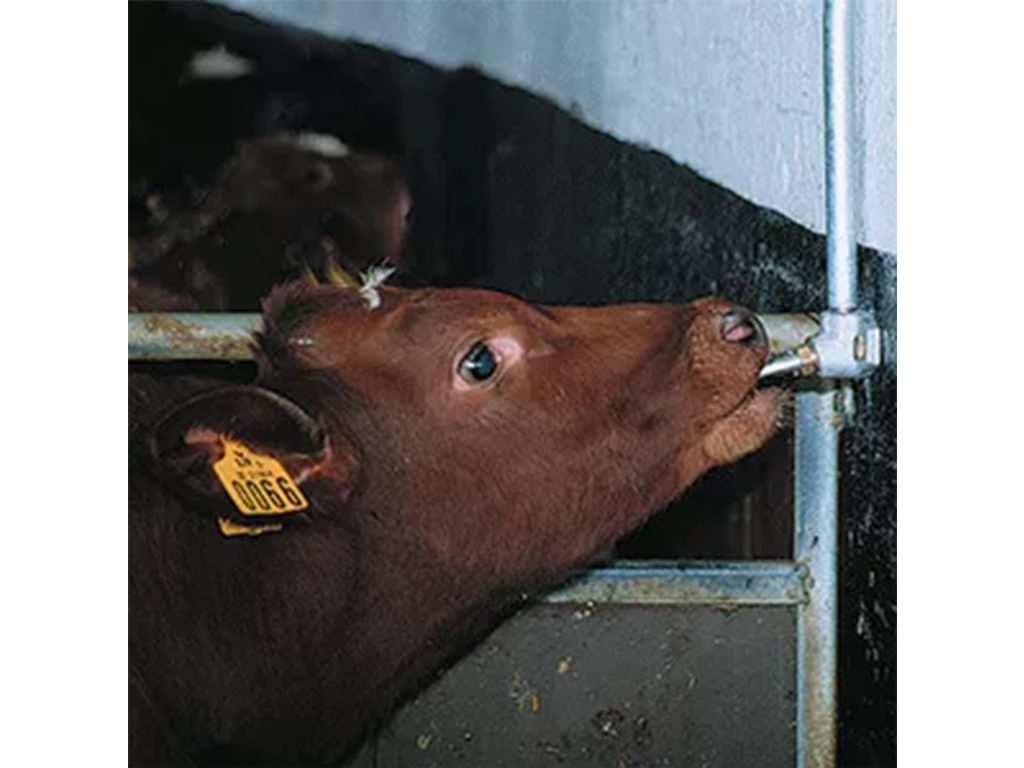 Nerezová kuličková napáječka, pro prasata do 110 kg, pro telata do 160 kg, z jednoho kusu oceli, automatické přizpůsobení tlaku vody, délka 75 mm, průměr závitu 1/2", průměr niplu 1/2", průtok při 3 bar: 1,25 l/min.