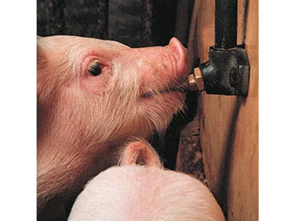Nerezová kuličková napáječka pro prasata a telata, automatické přizpůsobení tlaku vody, délka 75 mm, Ø závitu 1/2", Ø niplu 1/2". Objevte praktickou kuličkovou napáječky pro prasata či telata, kterou rozhodně využijete ve svém chovu! Tato kuličková napáječka, vyrobená z jednoho kusu oceli, je určena pro prasata do 110 kg nebo telata do 160 kg. Díky její automatické regulaci průtoku dostávají všechny zvířata stejné množství vody a navíc s minimálním únikem vody. Zajišťuje stejný proud vody a zároveň se automaticky přizpůsobí tlaku vody. Tento typ napáječky je velmi hygienický, spolehlivý a odolný díky kvalitnímu nerezovému materiálu. Napáječka by pro správnou funkci měla být instalována vodorovně (v úrovni tlamy) nebo nakloněná o 15°.