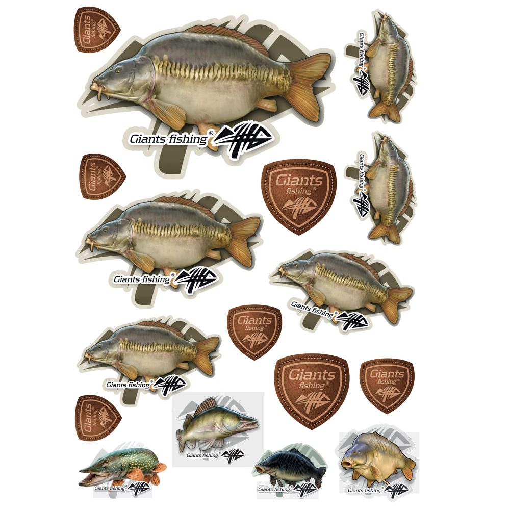 Upozornění: Podklad před lepením řádně očistěte a následně nechte vyschnout. Nálepka je určena na hladké povrchy.Arch obsahuje 10ks nálepek s motivem ryb a další loga značky Giants fishing.