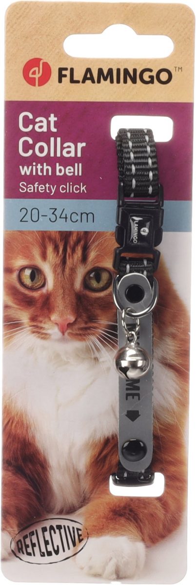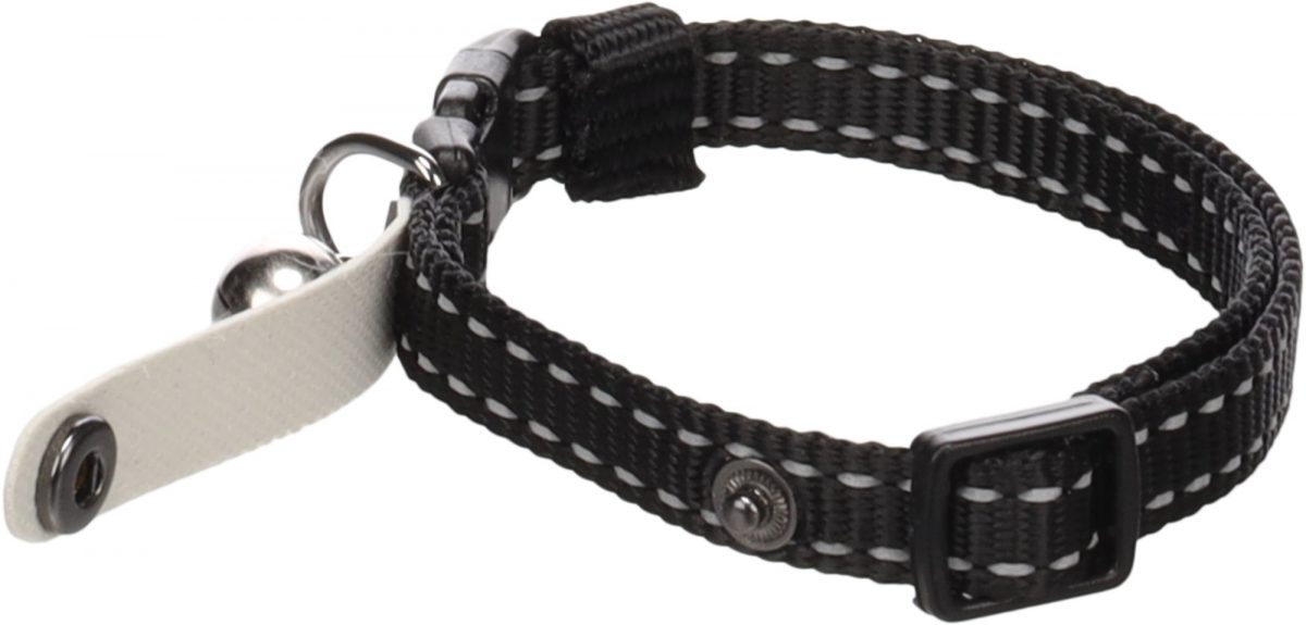 S tímto cool černým obojkem bude Vaše kočka hvězdou nejen na výstavě! Vyrobeno z nylonu, opatřeno reflexními proužky pro větší bezpečnost, rolničkou a popisovatelným štítkem. Obojek disponuje pohodlnou zacvakávací přezkou s bezpečnostní funkcí.