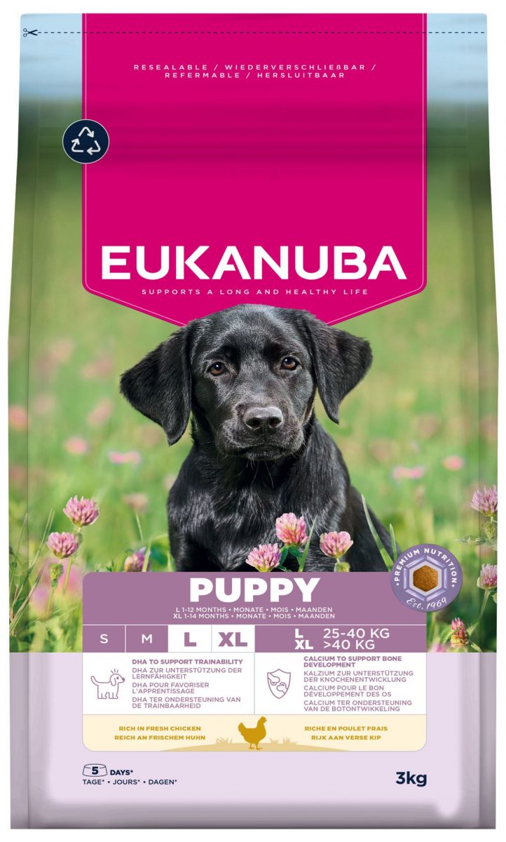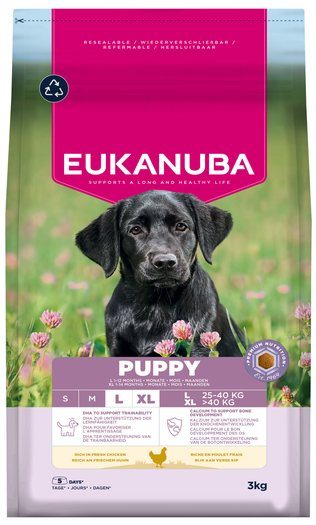 Kuřecí maso a rýže jsou lehce stravitelné, vhodné i pro citlivý žaludek. Určeno pro štěňata velkých plemen od 1 do 12 měsíců. Čerstvé kuřecí maso pro kvalitní bílkoviny a zdravý růst. DHA přispívá k rozvoji mozku a usnadňuje výcvik. Vyvážený obsah vápníku pro zdravý vývoj skeletu. Antioxidanty s vitamínem E posilují přirozenou obranyschopnost. Směs vlákniny s prebiotiky (FOS, MOS, řepná dužina) podporuje střevní mikroflóru. Omega-3 a 6 mastné kyseliny pro zdravou kůži a lesklou srst. Ideální základ pro zdravý a aktivní život štěněte.