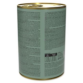 Složení: Maso a výrobky živočišného původu (jehněčí 4 %, kuřecí 4 %), obiloviny, zelenina, minerální látky.