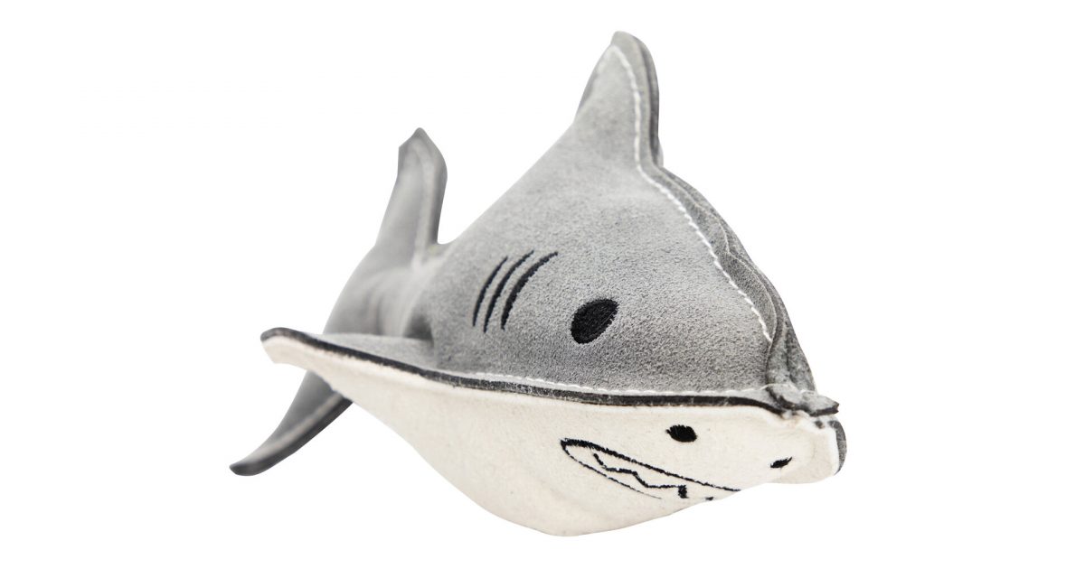 Žralok, 23 cm, kožená robustní hračka, HIPHOP DOG, šedá/bílá