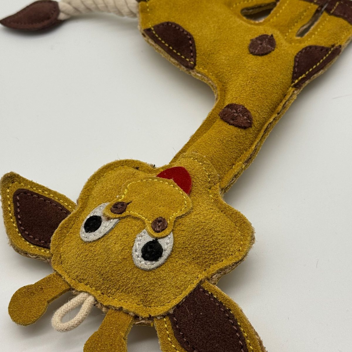 Gigi je ekologická hračka vyrobená pouze z přírodních materiálů, bez použití jakékoliv sloučeniny, která by se při žvýkání uvolňovala a mohla psovi nějak uškodit. Pravá broušená kůže je pro pejsky velmi voňavá a lákavá. Věřte, že se Váš parťák okamžitě zamiluje.... Hračka je vyrobena z pravé broušené buvolí kůže podšité jutovou látkou, vyplněna přírodními kokosovými vlákny a nevydává žádný zvuk.