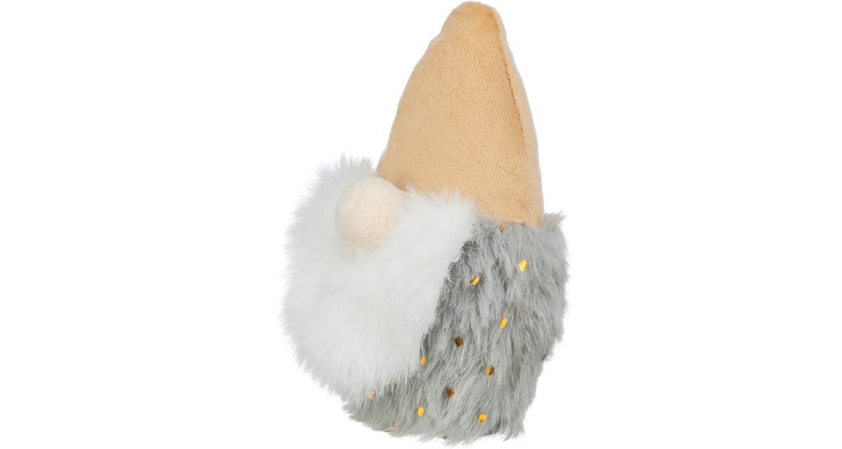 Vánoční skřítek s catnipem, 10 cm, plyš, béžová/šedá/bílá
