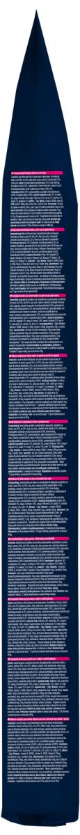 Sušené kuřecí a krůtí (přirozený zdroj glukosaminu, chondroitinu a taurinu), jehněčí (14 %), rýže (14 %), kukuřice, ječmen, čirok, vepřový tuk, sušená řepná dužina (2,6 %), kuřecí šťáva, minerální látky (včetně hexametafosforečnanu sodného 0,34 %), sušená celá vejce, fruktooligosacharidy (0,25 %, přírodní prebiotikum), sušené pivovarské kvasnice (přírodní zdroj vitamínů B a selenu), rybí tuk (přirozený zdroj (čeho) omega-3 mastné kyseliny), mannanoligosacharidy (0,13 %, přírodní prebiotikum), glukosamin (z živočišné tkáně) (0,04 %), chondroitin sulfát (0,004 %).