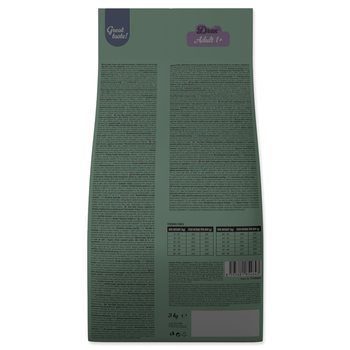 Složení: Obilniny, maso a výrobky živočišného původu (z toho sušené jehněčí 4 %), vedlejší výrobky rostlinného původu (z toho sušená čekanka 0,2 %), ryby a vedlejší výrobky z ryb, zelenina (z toho hrášek 4 %), oleje a tuky, semínka, minerální látky.
