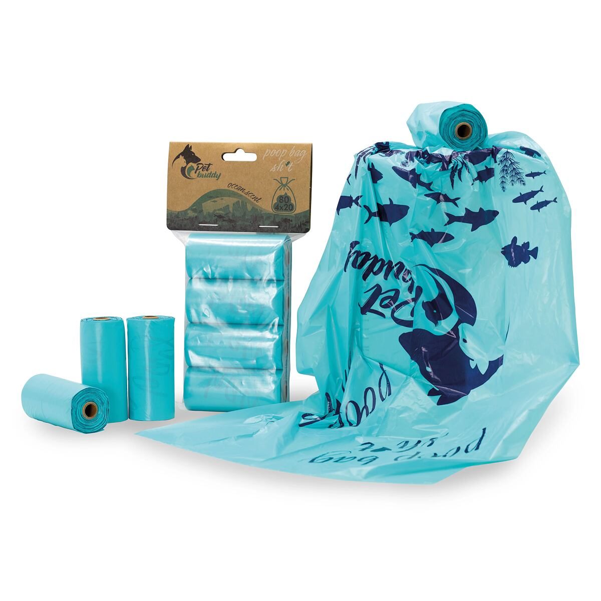 PetBuddy sáčky na exkrementy OCEÁN 4 role/ á 20 sáčků s potiskem a vůní