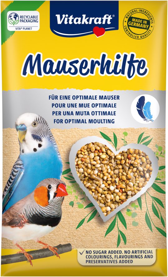 Speciální směs pro andulky a malé papoušky, podporující rychlé a zdravé přepeření. Posiluje stavbu kostí a zajišťuje lesk peří.