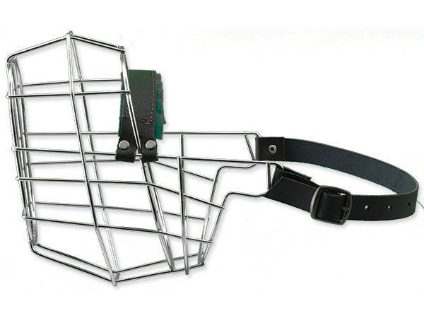 Kovový náhubek s koženými řemínky na zapínání pro boxera. Kovový náhubek s koženými řemínky na zapínání pro boxera.
