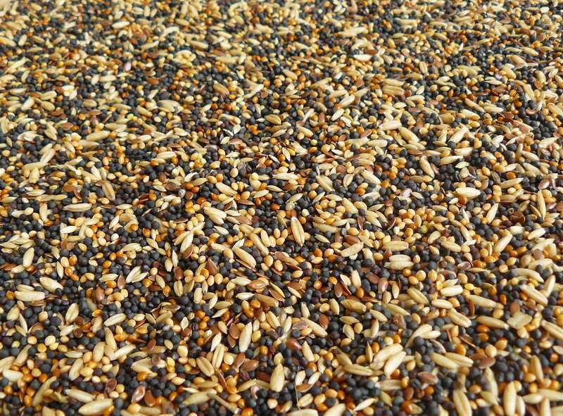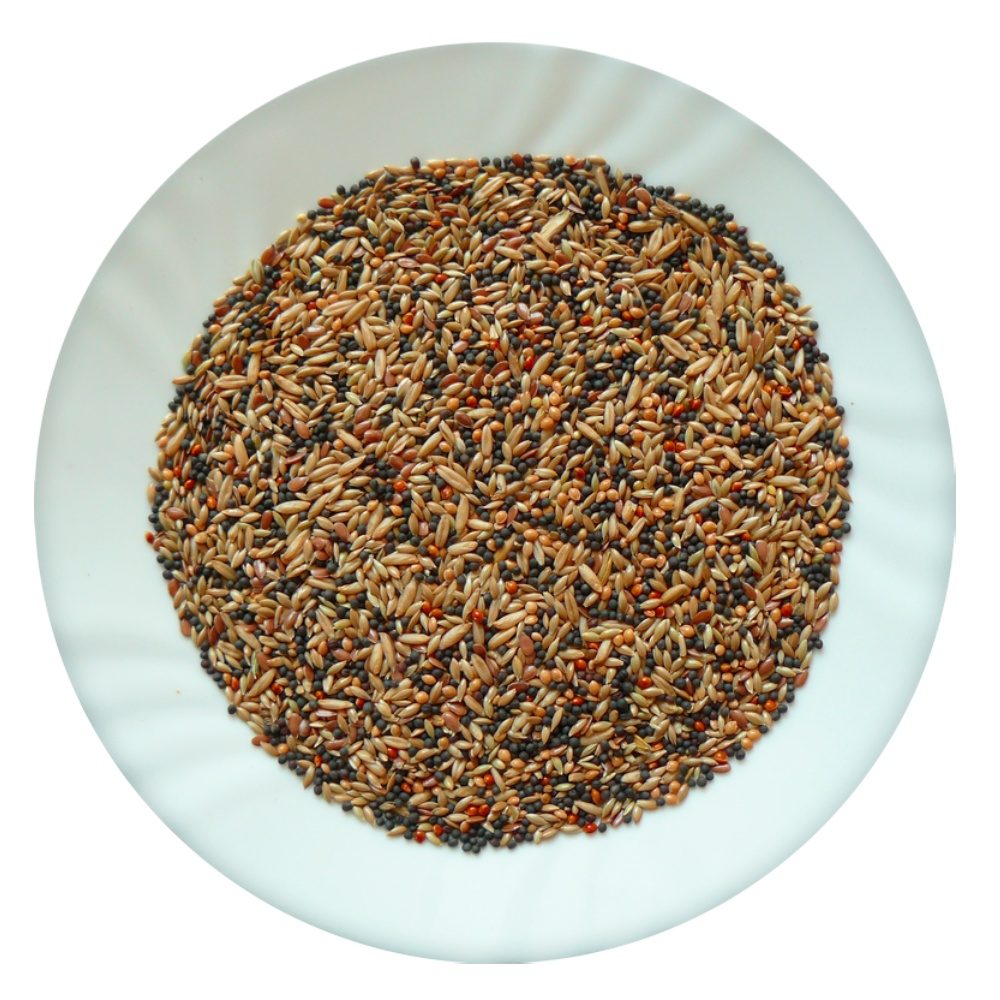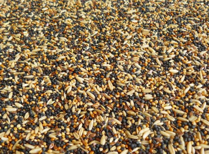Složení: řepka, proso žluté, proso červené, oves nahý, lesknice, len.