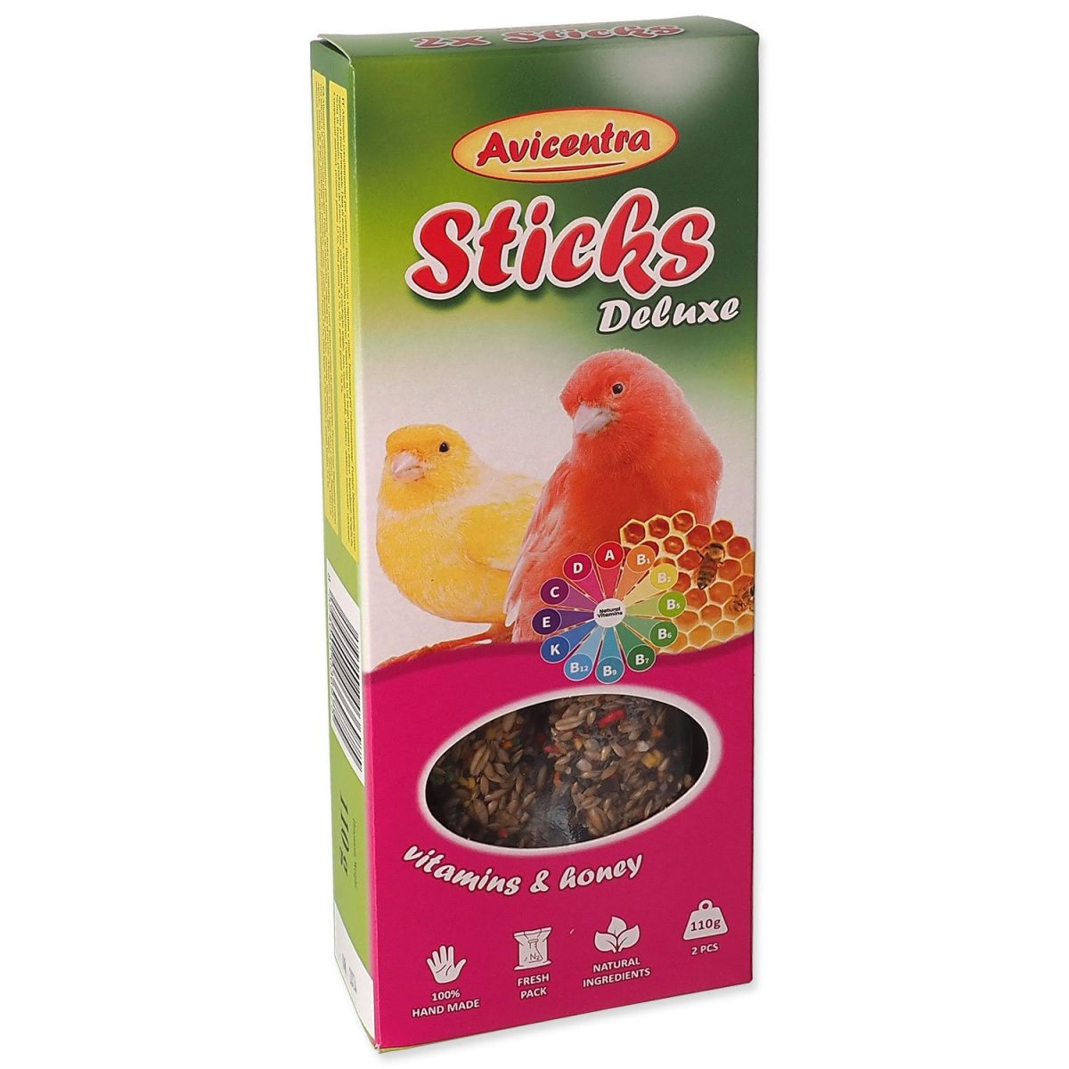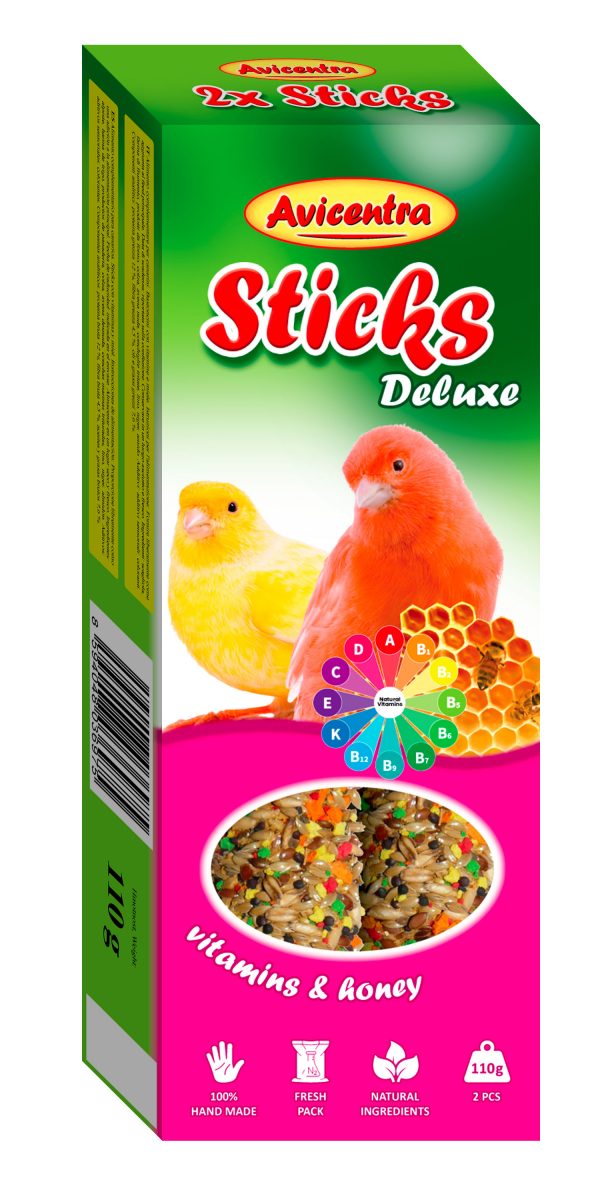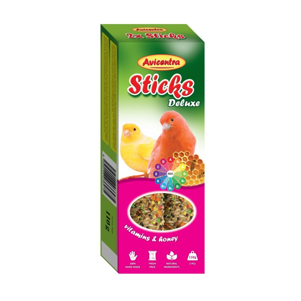 Tyčinky s medem a vitamíny jsou pochoutkou, výživným krmivem a hračkou zároveň. Jsou vyrobeny z bohaté směsi zrnin a dalších přírodních surovin, včetně medu s přirozenými zdroji vitamínů a minerálií a proto jsou nepostradatelným doplňkem každodenní stravy.