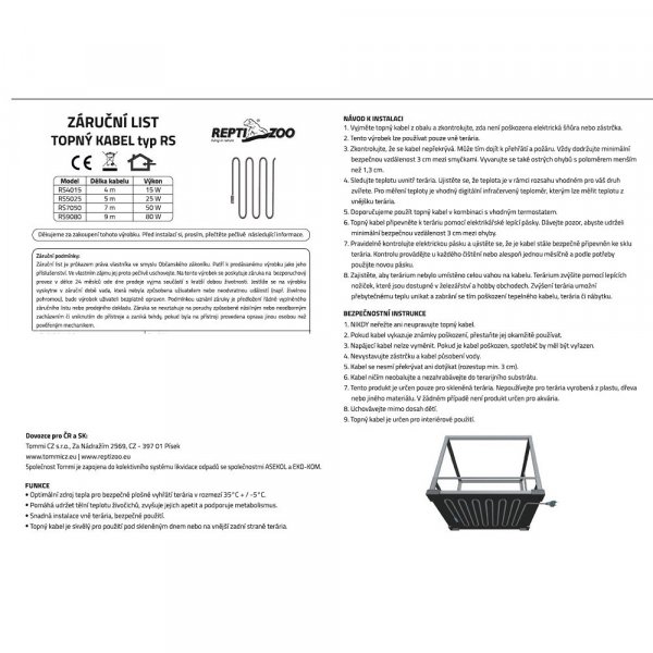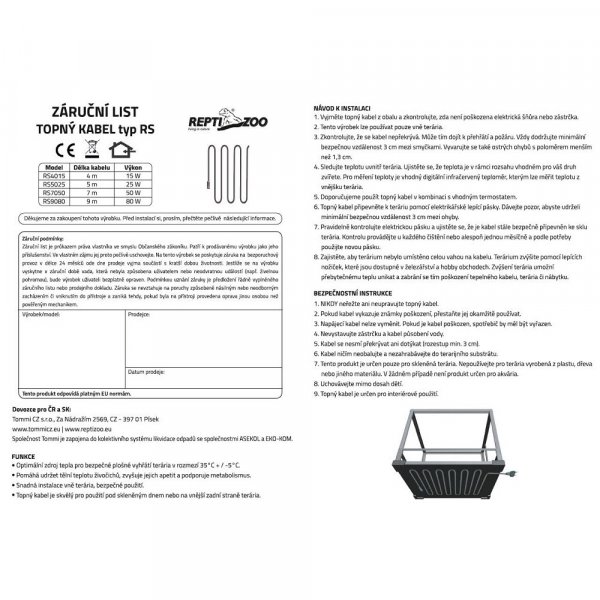 Jedná se o topný kabel určený k vytvoření a udržení tepelného komfortu v teráriu.