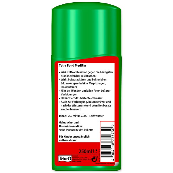 Voda, ve které se vytvářejí zárodky kožních parazitů a bakteriálních infekcí hniloby ploutví a další bakterie, může vést k vážným onemocněním ryb. Medi Fin rozpouští tyto škodlivé bakterie.