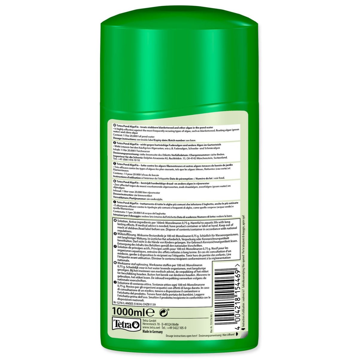 Růst řas může narušit biologickou rovnováhu v nádrži a způsobit nepříjemný vzhled. Algofin vytváří takové biologické podmínky, za kterých je zamezeno rozmnožování řas. Udržuje čistou vodu v zahradních nádržích.