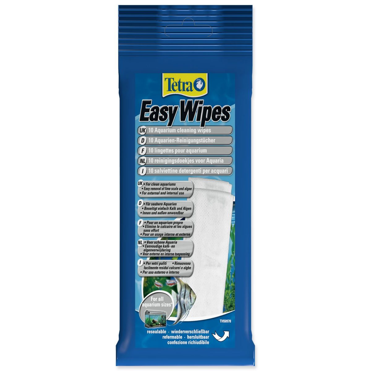 Čistící ubrousky pro všechny typy akvárií. Snadno odstraňují vápenaté usazeniny a řasy a jsou vhodné k použití na vnější i vnitřní stranu akvária.
