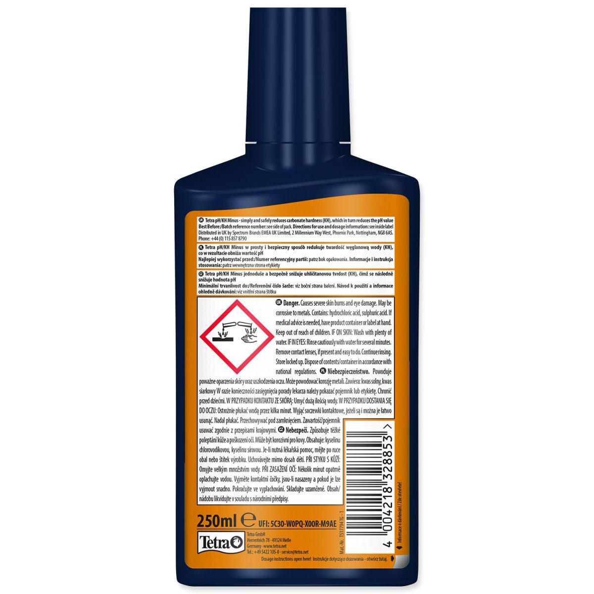 Dávkování: pro udržení této hladiny přidejte do vody každý 2 - 3 den maximálně 25 ml Tetra PH/KH minus na 100 l vody. Opakujte, dokud nebudou hodnoty optimální.