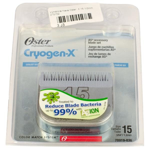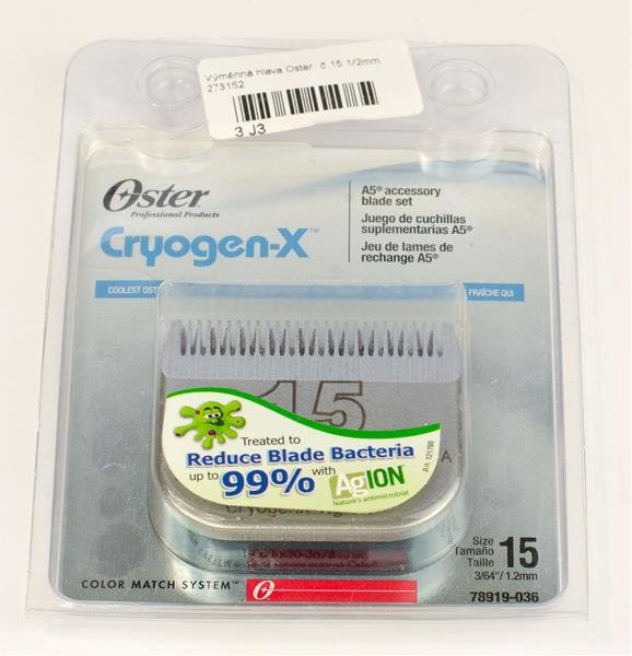 Náhradní stříhací hlava Oster Golden size 15 1.0 mm. Inovativní technologie Cryogen-X, navíc doplněna antimikrobiální vrtsvou Agion ®.