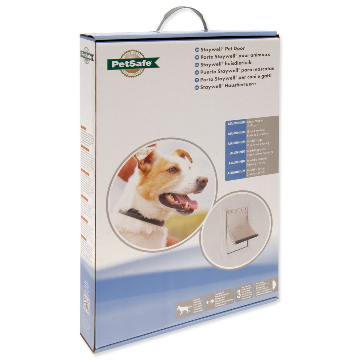 Průchozí dvířka Staywell 640 hliníkové od výrobce PetSafe pro malého, středního a velkého psa s váhou do 45kg. Průchozí dvířka umožní psovi pohodlný a svobodný průchod tam i zpět nebo pouze jedním směrem. Hliníkové provedení, vhodné pro kočky a malé psy do 45kg, odolné proti povětrnostním podmínkám. Zamykání (otevřeno, zavřeno). Vhodné pro instalaci do: dřeva, PVC, kovu, skla a cihly. Doporučujeme hlavně pro malé, střední a velké psy max. do 45kg váhy maximální šířka hrudi 26 cm. Rozměry dvířek: celková velikost 50,2 cm x 32,9 cm velikost flapu je 45,1 x 27,7 cm. Dají se namontovat do dřeva, i skla. Pozor u dvojitých a tvrzených skel, doporučujeme konzultaci odborníka. Uživatelský manuál pro všechna dvířka v balení.
